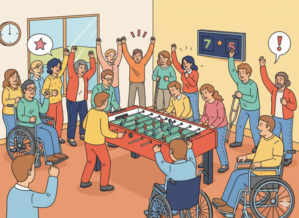 Unser Verein organisierte aus diesem Anlass in Windisch das erste Tischfussball-Turnier, das in der Folge jeweils im September in der Werkstatt Hausen der Stiftung Domino durchgeführt wird.